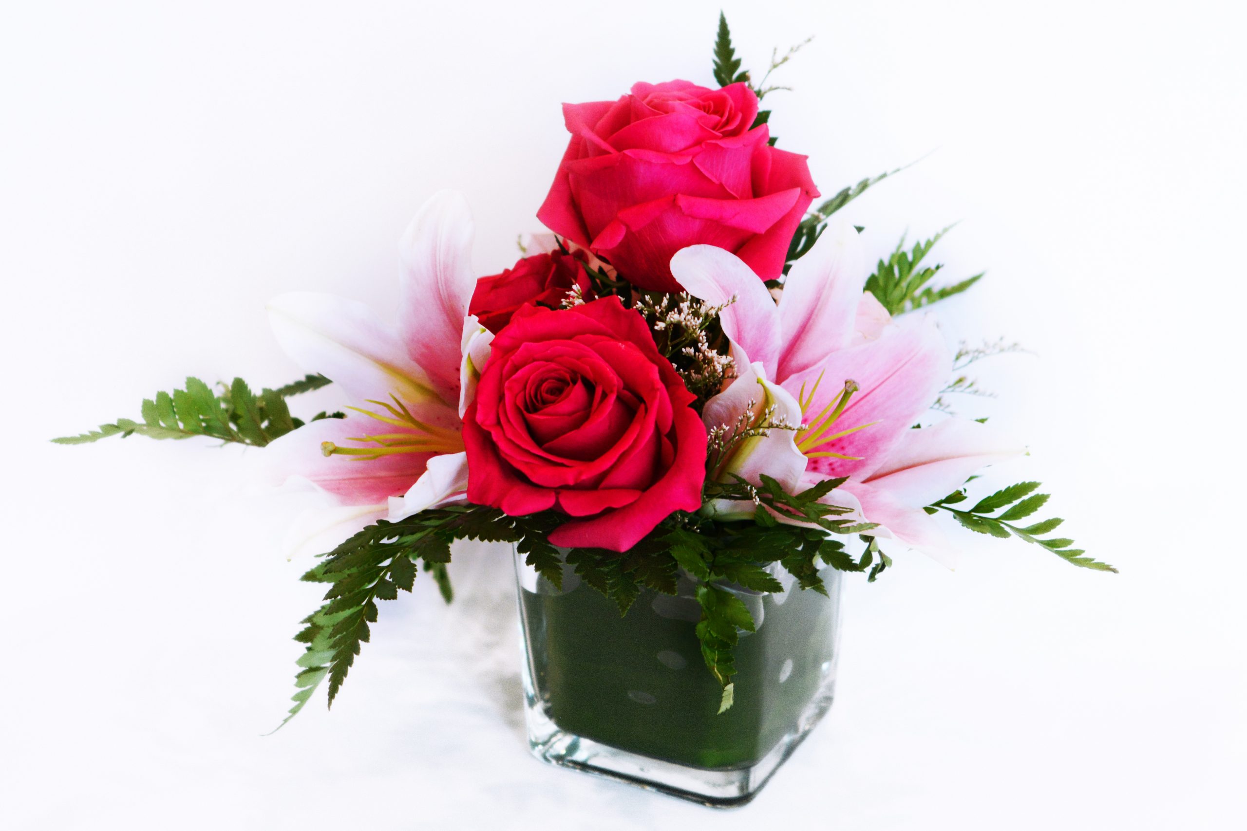 Laura is a simple but elegant vase arrangement. It comes in a square vase, with 4 roses and 2 stargazer lilies and greenery.